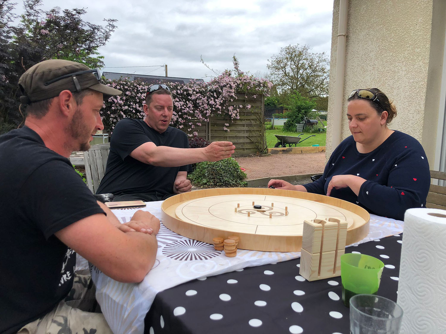 Le Crokinole est un jeu géant amusant et très tactique. Autour du plateau, les joueur·se·s s’affrontent à tour de rôle en lançant un de leurs 12 palets à l’aide de pichenettes. Le but du jeu ? Viser le trou central de la planche ronde ou les champs de plus grande valeur afin de marquer le score le plus élevé tout en essayant d’éloigner les palets de l’équipe adverse.