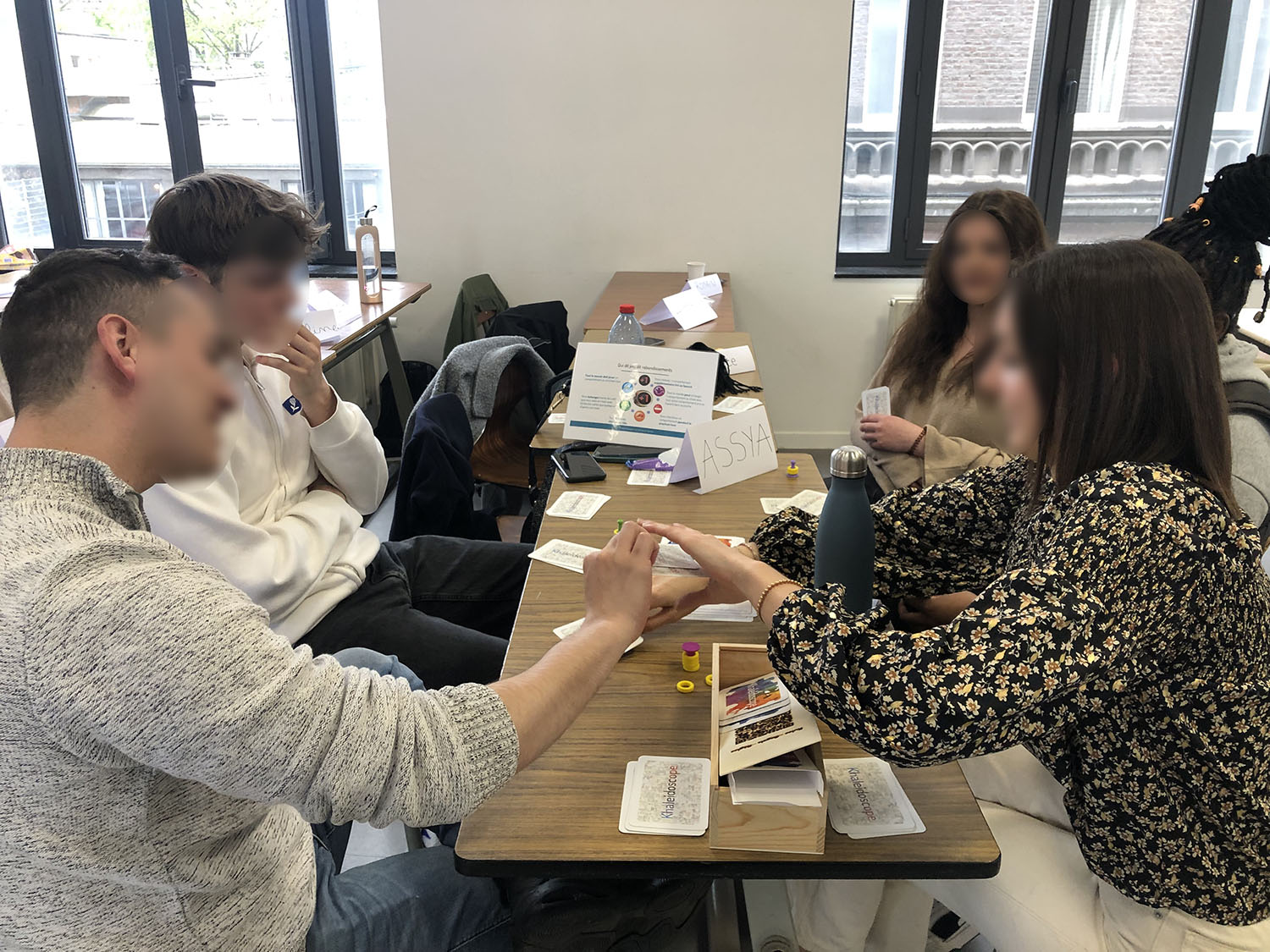 Conçue pour développer les compétences psychosociales de vos publics, la version Accueil de Khaleǐdoscope® invite les participant·e·s à se projeter dans des mises en situation directement inspirées de leur quotidien. Outre le processus d’identification et d’empathie pour la personne qui lit la carte de mise en situation, les autres participant·e·s choisissent la carte de comportement qui leur semble la plus adaptée et expliquent comment il·elle·s résoudraient la situation s’ils en étaient témoins ou informé·e·s. Au terme du tour de table, la personne qui a lu la carte de mise en situation opte pour la proposition qui lui conviendrait le mieux. Cet échange de solutions permet un réel brainstorming et la collecte de toutes les pistes de solutions que les participant·e·s pourront ensuite mettre concrètement en place sur le terrain.